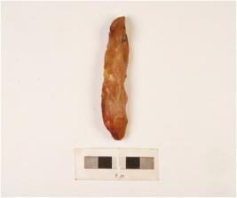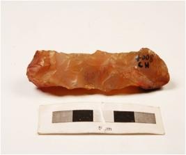 | Description / विवरण | Raw material of carnelian stone with smooth surface chipped off sides, rectangular in shape and square section, cortex visible at one end and raw material given heat treatment. |