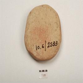 | Description / विवरण | A disc made on sand stone, polished surface with smooth edges, red in colour and rectangular in section. |