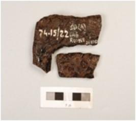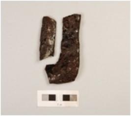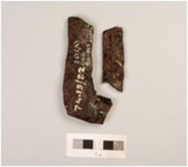 | Description / विवरण | Fragment of unidentified iron object, probably a frame, curved, flat ends, polihsed rough surface. |