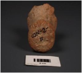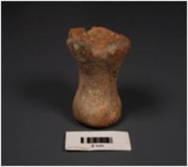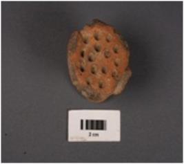 | Description / विवरण | Handmade terracotta stamp with handle, flat top, circular stamp design on base, slightly chipped off from edges, wash treatment is given in red colour. |