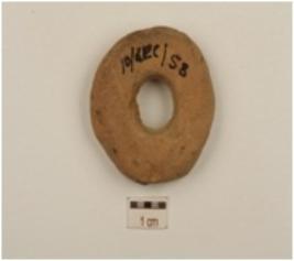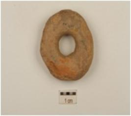 | Description / विवरण | A spindle whorle, made of terrocatta, circular shape and perforation in the middle. |