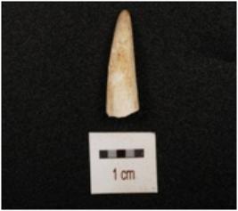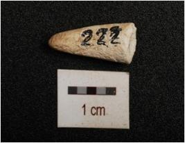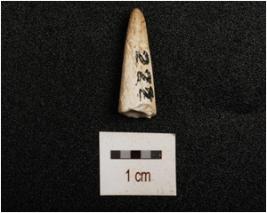 | Description / विवरण | Broken piece of ivory with polished surface, circular cross section, pointed at one end, broken at other end concave shape in middle surface. |