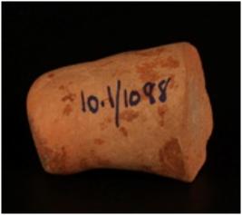 | Description / विवरण | Fragment of handmade tubular shaped terracotta object, upper part is broken and thick, made with well levigated clay, ill fired, surface treated with a wash in dull red colour, partly broken, circular in section. |