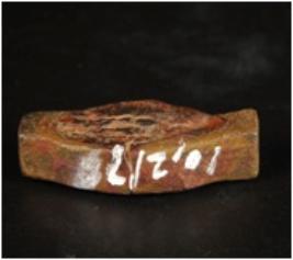 | Description / विवरण | An alloy metal piece. The piece is not broken from any where. Its both ends are shallow and middle part has a bulge. The surface is rough with square cross section. |