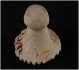 | Description / विवरण | A faience button. It has a knob attached with it. The button is aqua green in colour the edge of the inner part has grooved lined border. |
