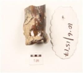 | Description / विवरण | unidentified object fragment of a glass object, broken from all ends, brown in colour, pointed glass , glass surface. |