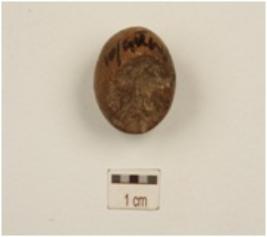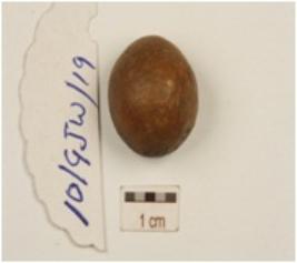 | Description / विवरण | A terracotta sling ball with circular cross-section surface. |