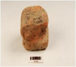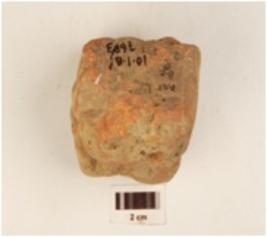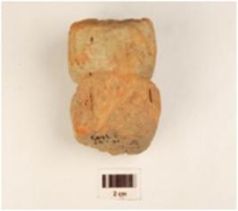 | Description / विवरण | A fragment of terracotta object, segmented, square in shape, groove line on centre and rough surface. |
