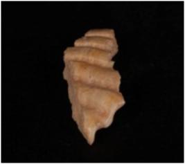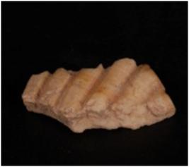 | Description / विवरण | A fragment of conch decorated with grooved lines. |