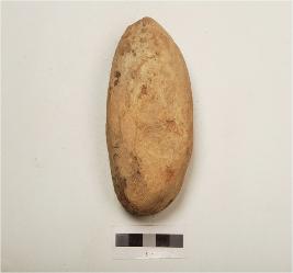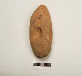 | Description / विवरण | A terracotta mushtika made from well levigated clay, oval shaped, depression in the centre, husk marks on the surface. |