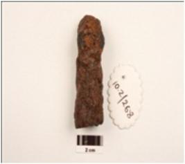 | Description / विवरण | An iron object, cylindrical in shape, uneven surface, visible cracks annd round in section. |
