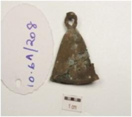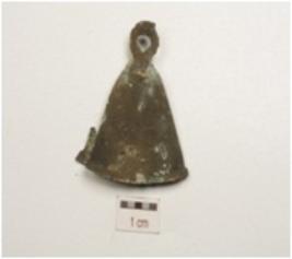 | Description / विवरण | Fragment of copper bell, perforated top, without tangue and partly detached into two pieces. |
