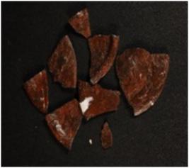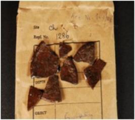 | Description / विवरण | Fragments of a copper object smooth surface on one side, rim-like small projection on the edge. |