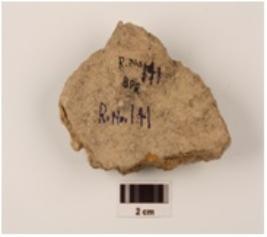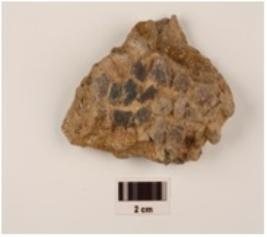 | Description / विवरण | A fragment of skin rubber inlaid with stone chip on surface. |