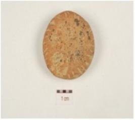 | Description / विवरण | A handmade circular shaped terracotta disc with decorated edges slightly chipped off from both the sides. |