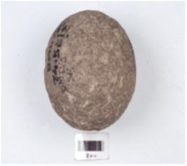 | Description / विवरण | A sling ball made on quartzite, spherical and rough surface. |