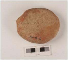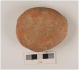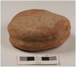 | Description / विवरण | A handmade terracotta well baked bi-conical unidentified object, made with fine clay and grooved edges. |