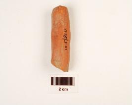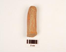 | Description / विवरण | Fragment of a terracotta handmade object with long cylinder circular shaped, circular in section, well baked, fine fabric and traces of red slip. |