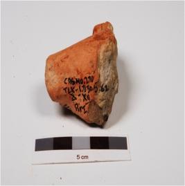 | Description / विवरण | A fragment of a head of a terracotta figurine, well baked, traces of red slip on the surface. |