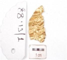 | Description / विवरण | A gold foil, embossed floral motif on surface and wavy surface. |