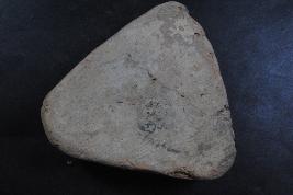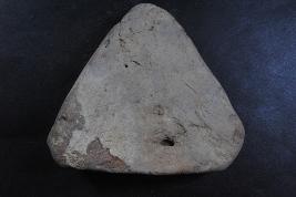 | Description / विवरण | This is a trangular cake made of terracotta was found in Banawali. It is well fired and color is red. It may be used for worship or a weigh. Surface is rough and flaked. There are some cut marks and white patches on its surafce. The object loosing its natural color. |