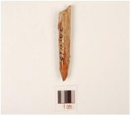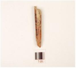 | Description / विवरण | Fragment of bone stylus, polished surface, pointed working end, circular cross section and broken another end. |
