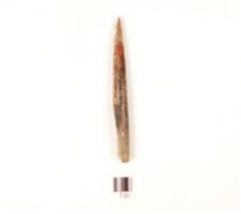 | Description / विवरण | Fragment of charred bone stylus, circular cross section, pointed working end and broken another end. |