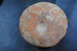 | Description / विवरण | This is a circular cake made of terracotta was found in Banawali trench no. WE3, layer no.4. It is well fired and color is red. It has some finger impression and cut marks on its surface. It may be used as a weight or a worship object. Surface is rough and flaked. Deposition of dust and dirt. |