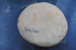 | Description / विवरण | This is a circular cake made of terracotta was found in Banawali trench no. XF2, layer no.3. It is well fired and color is ochre. It has some cut marks on its surface. It may be use as a weight or a worship object. Surface is rough and flaked. Deposition of dust and dirt. |