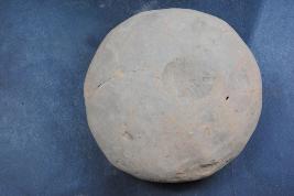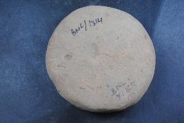 | Description / विवरण | This is a circular cake made of terracotta was found in Banawali trench no. YC4, layer no.3. It is not well fired and color is ochre. It has some cut marks on its surface. It may be used as a weight or a worship object. Surface is rough and flaked. Deposition of dust and dirt. |