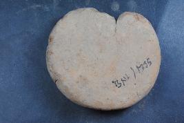 | Description / विवरण | This is a circular cake made of terracotta was found in Banawali trench no. ZF2, layer no.2. It is well fired and color is red. It has some cut marks on its surface. It may be used as a weight or a worship object. Surface is rough and flaked. Deposition of dust and dirt. |