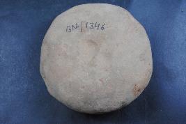 | Description / विवरण | This is a circular cake made of terracotta was found in Banawali. It is not well fired and colors are ochre and black. It has some cut marks on its surface. It may be used as a weight or a worship object. Surface is rough and flaked. Deposition of dust and dirt. |