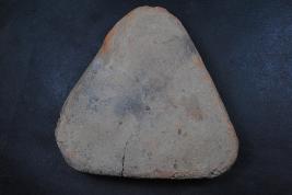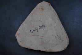 | Description / विवरण | It is a trangular cake made of terracotta was found in Banawali trench no. WB2, layer no. 1. It is well fired and color is red. It may be used for worship purpose or a weight. |