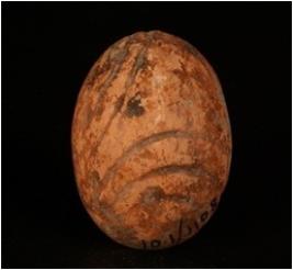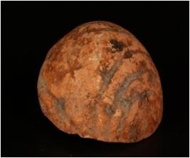 | Description / विवरण | Spherical shaped terracotta sling ball,half broken that s why it is hemi-spherical in shape. Grooved design on surface, hand made and sun dried. Painted in red colour. |