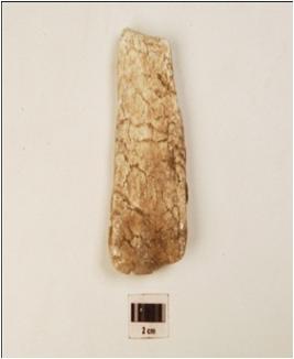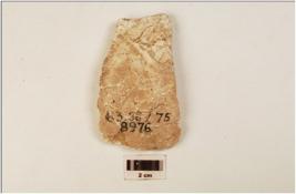 | Description / विवरण | Fragment of an unidentified convex object made of alabaster and cracks on the surface. |