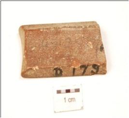 | Description / विवरण | Fragment of a rectangular shaped unidentified flat object made of jasper, vertical notches on the mid rib. |