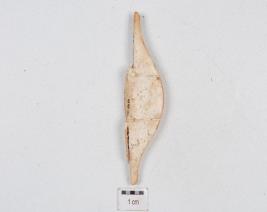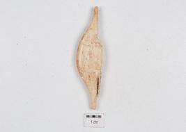 | Description / विवरण | Fragment of double sided comb, made of ivory, wavy lateral side, broken teeth, rectangular cross section, incised parallel line on body and polished surface. |