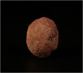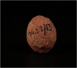 | Description / विवरण | A sand stone ball with raugh surface used for household purpose,circular section, partly chipped off, red coloured. |