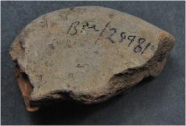 | Description / विवरण | It is a broken fragment of a cake made of terracotta was found in Banawali trench no. ZB2, layer no.3. It is well fired and color is red. It has some cut marks and flaking on its surface. |