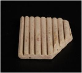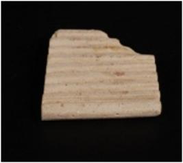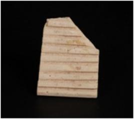 | Description / विवरण | An indeterminate piece of faience object. It is rectangular in shape and has eight grooved lines on its surface. |