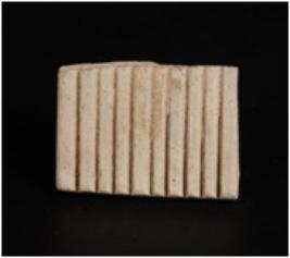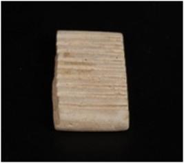 | Description / विवरण | An indeterminate piece of faience object. It is rectangular in shape and has Nail grooved lines on its surface. |