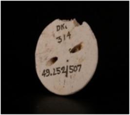 | Description / विवरण | Steatite button with smooth surface, round in shape, perforation from back side, partly broken. |
