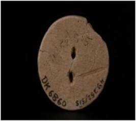 | Description / विवरण | Steatite button with smooth surface, round in shape, perforation from back side, partly broken. |