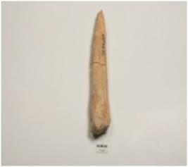 | Description / विवरण | Bone engraves, broken from middle, pointed one end partly damaged, other end broad and cutting polished surface. |