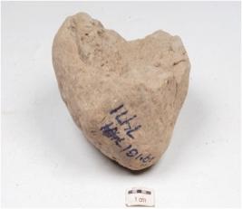 | Description / विवरण | Fragment of handmade terracotta mustika, irregular shape, well baked and finger impressions on the surface. |