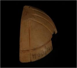 | Description / विवरण | Fragment of conch shell protector with natural vertical lines and semi circular line on surface. partly glossy interior. |