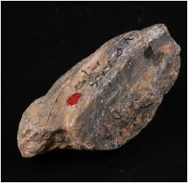 | Description / विवरण | Fragment of modified soap stone with rough surface, partly conical in shape. |