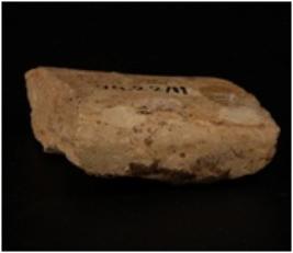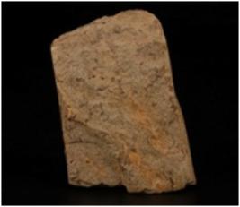 | Description / विवरण | Rectangular fragment of stone unidentified object with rough surface. |