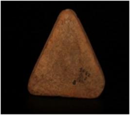 | Description / विवरण | Terracotta handmade triangular shaped cake with rectangular section and rough surface. Ill fired, gritty clay with awash treatment in sull red colour. |