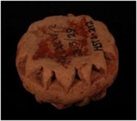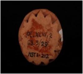 | Description / विवरण | Hand made terracotta disc with star shaped design round the edge made by notching.Traces of red slip. |
